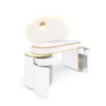 The desk’s body is crafted from high-quality wood and finished in glossy white lacquer, which gives it a radiant yet subtle sheen. It’s easy to clean and highly durable — ideal for daily use in any child’s environment. Subtle golden trims define the silhouette, elevating the piece with just the right amount of shimmer. These metallic accents add a sophisticated touch while maintaining the magical softness of the overall design.