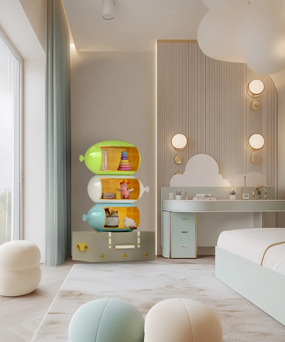 At 170 cm in height, the Skybound Bookcase commands vertical space with authority, drawing the eye upward and animating the room with a silhouette that no other piece of children’s furniture currently offers. It is, in the fullest sense of the word, a landmark.